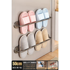 磁吸款/枪灰色入户门磁吸拖鞋架【双人款50cm*2个装】_