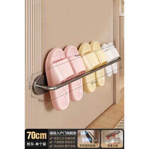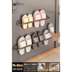 磁吸款/枪灰色入户门磁吸拖鞋架【双人款50cm+三人款70cm】_
