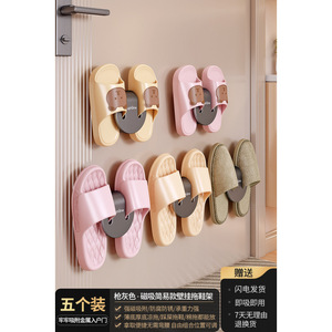 磁吸款/枪灰色简易款壁挂拖鞋架 5个装_