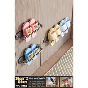 磁吸款/枪灰色入户门磁吸拖鞋架【单人款30cm*2+双人款50cm】_