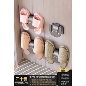 磁吸款/枪灰色简易款壁挂拖鞋架 4个装_