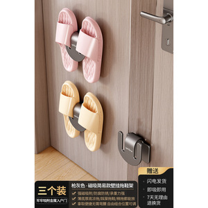 磁吸款/枪灰色简易款壁挂拖鞋架 3个装_