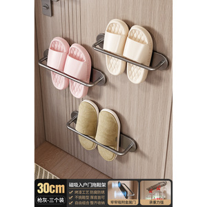 磁吸款/枪灰色入户门磁吸拖鞋架【单人款30cm*3个装】_