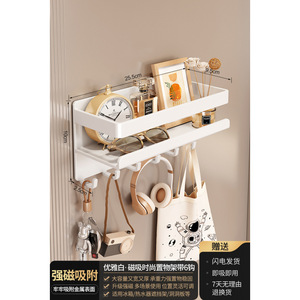 磁吸款/优雅白时尚置物架带挂钩【位置灵活可调】_