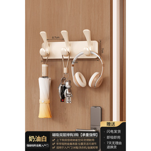 磁吸款/奶油白多巴胺排钩3钩【牢牢吸附金属表面】_
