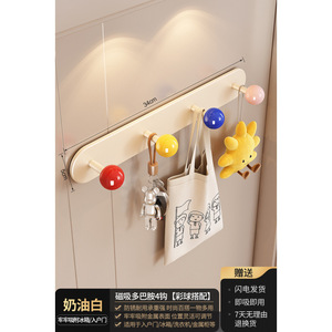 磁吸款/奶油白多巴胺排钩4钩【牢牢吸附金属表面】_