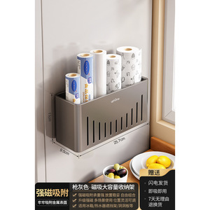 磁吸款/枪灰色置物湿巾架长25cm【上可置物下可抽纸】_