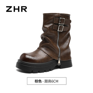 ZHR则则6cm增高骑士靴2025年新款酷飒风街头时尚短靴女JF322