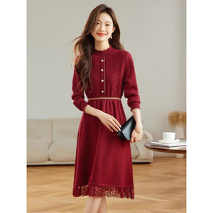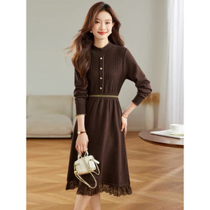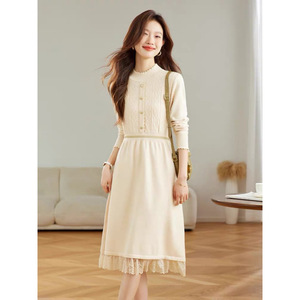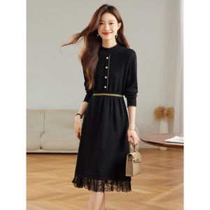 秋冬配大衣的内搭连衣裙2025年新款轻奢高级感洋毛针织打底毛衣裙