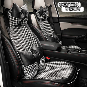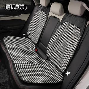 方格小香风拼皮坐垫黑色后排