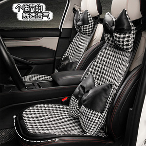 方格小香风拼皮坐垫黑色前排