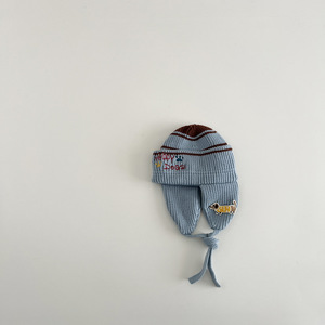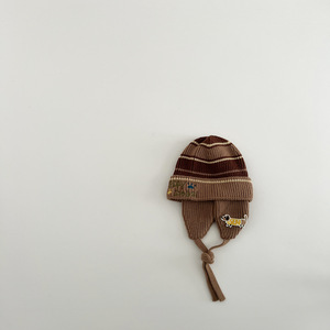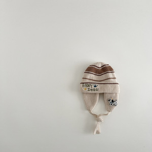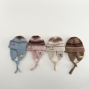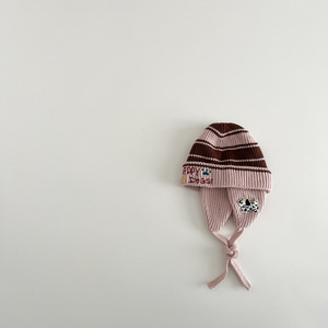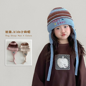 秋南 儿童帽子冬季ins可爱小狗条纹针织帽保暖防风宝宝加棉护耳帽