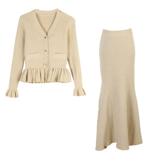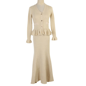 法式优雅鱼尾裙女V领针织开衫半裙修身收腰秋冬新款名媛千金裙女