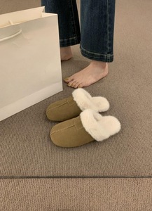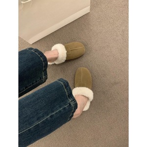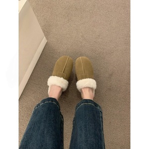 复古森系磨砂皮平底包头半拖鞋女外穿2025秋冬新款棉鞋加绒勃肯鞋