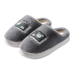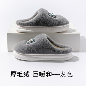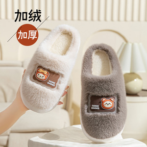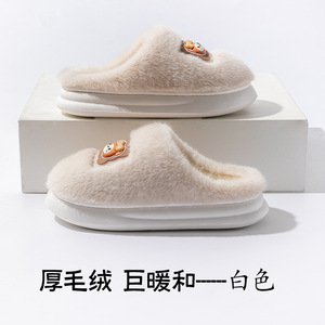 毛毛绒棉拖鞋女冬季室内居家厚底加绒保暖不掉毛可爱卡通月子棉拖