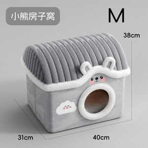 霜白松烟灰双耳小熊房子窝-M型 【7斤内小猫奢享/肆意躺睡】