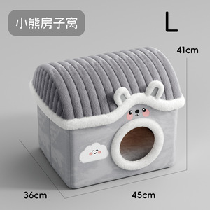霜白松烟灰双耳小熊房子窝-L型 【15斤内猫咪享受舒适的睡眠】