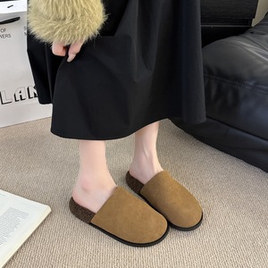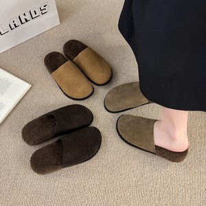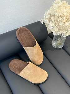 滨莉25秋新款磨砂牛皮平底百搭休闲舒适时尚毛鞋网红包头拖鞋滨莉
