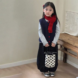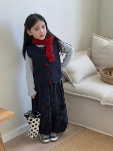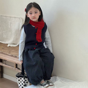 女童韩版秋季2025新款叠穿打底马甲真两件上衣波点休闲裤子三件套