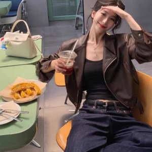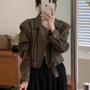 复古短款2025外套春秋季皮衣短款新款时尚百搭显宽松机车夹克上衣