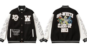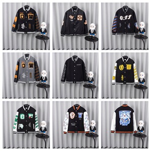 高版off white棒球服美潮飞行员夹克高街ins宽松百搭OW联名棒球服