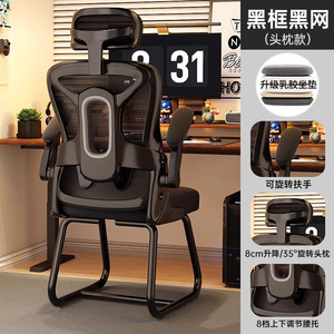 黑框黑网+3D头枕-腰靠八档调节乳胶坐垫8.5cm三级气杆尼龙脚