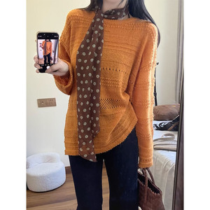 2025新款法式设计感薄款多巴胺镂空长袖针织衫女宽松休闲开衫上衣