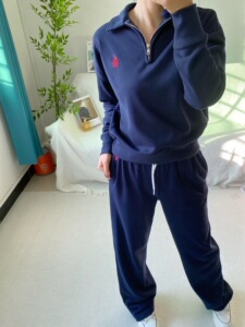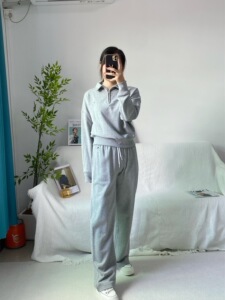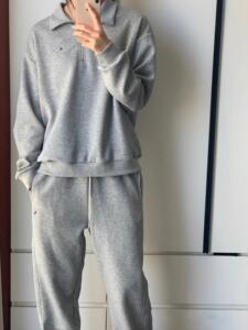 实拍 RL小马秋款套装 女刺绣半拉链翻领卫衣松紧腰直筒裤休闲裤宽