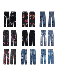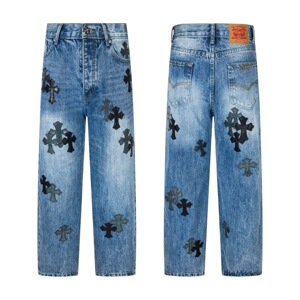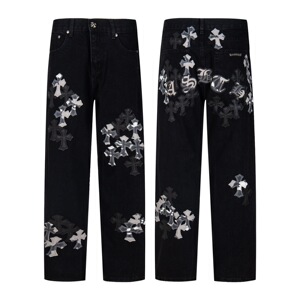 跨境高街潮牌CH克罗伈牛仔裤男十字架直筒宽松休闲美式情侣长裤