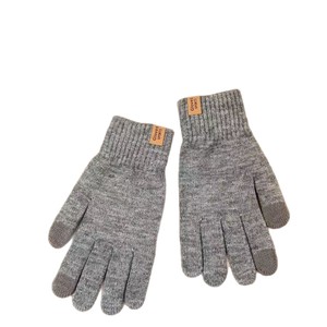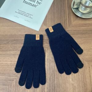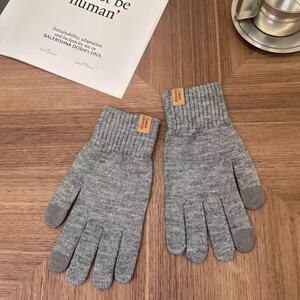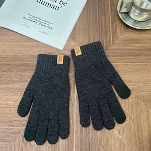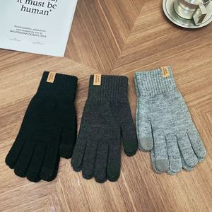 2025冬季男士皮标针织手套可触屏加绒保暖毛线纯色新款简约百搭潮