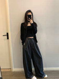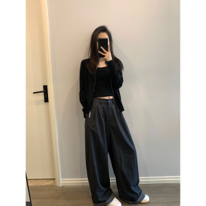 慵懒松弛感 高腰直筒阔腿休闲裤女秋季款垂感拖地优雅通勤长裤子