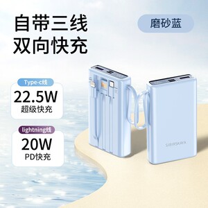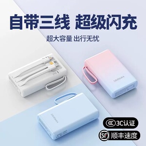 3C认证批发新款充电宝22.5W20000毫安薄款小巧便携自带线超级快充