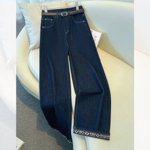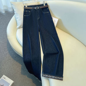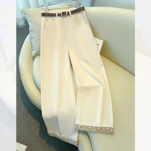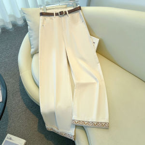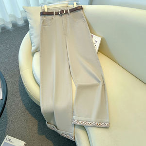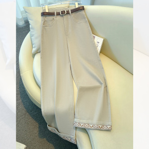 高端翻边刺绣阔腿牛仔裤女早秋季2025年新款欧货爆款九分裤直筒裤