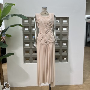 亚马逊名媛显瘦独特网纱弹力交叉编织连衣裙复古设计款修身晚会