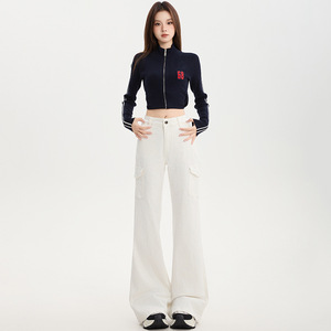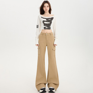美式白色微喇牛仔裤女秋季新款设计感宽松显瘦百搭阔腿工装喇叭裤
