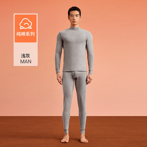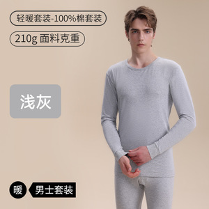 A类100棉情侣秋衣秋裤套装女纯棉抗菌薄款保暖内衣男士打底棉毛衫