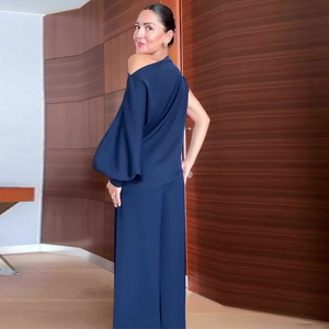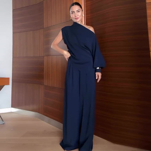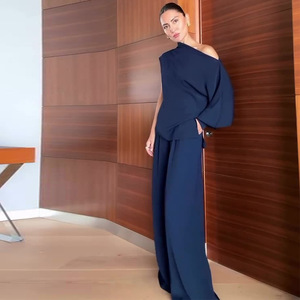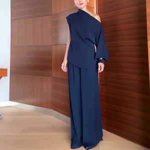 2025秋季新款欧美亚马逊跨境外贸女装露肩不规则休闲纯色时尚套装