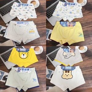 童裤男卡纸千趣豆纯棉多莫代尔少3A蚕丝抑菌透气孔裆男童平角裤