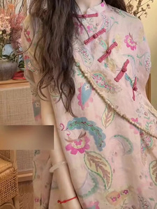 粉色印花连衣裙