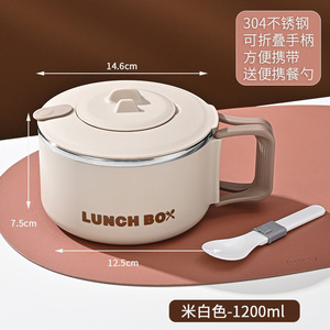 304不锈钢【米白色-1200ml】送便携餐具
