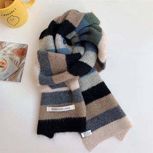 彩虹条马海毛围巾女冬季韩版拼色条纹羊毛短款围脖学生保暖短巾男
