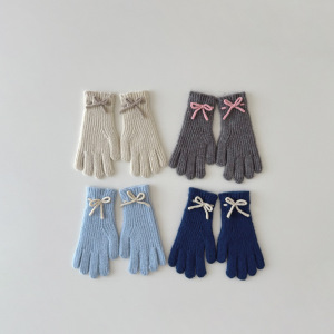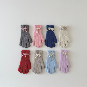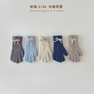 秋南 儿童手套冬季韩版ins蝴蝶结女童手套女童保暖触屏五指手套潮