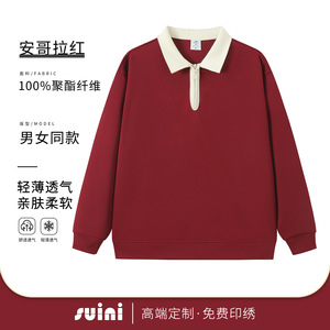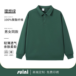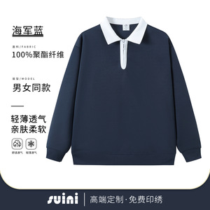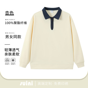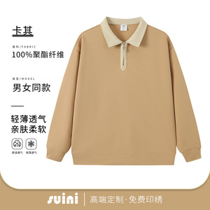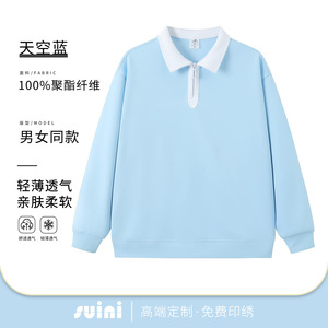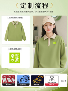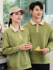 半拉链POLO衫定制工作服印logo秋冬餐饮奶茶火锅店服务员工装长袖