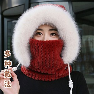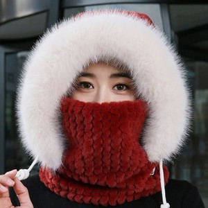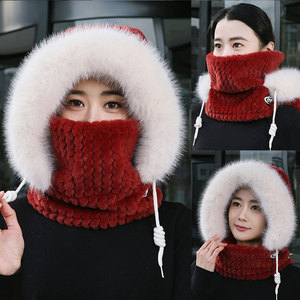 日系秋冬季帽子女款围脖一体加绒加厚保暖帽户外骑行帽防风保暖帽