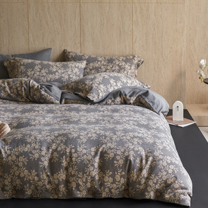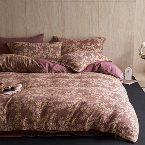 浪漫花卉复古风全棉纯棉四件套色织提花长绒棉被套纽扣款床上用品