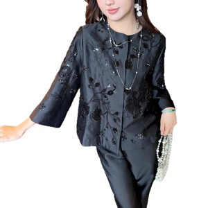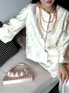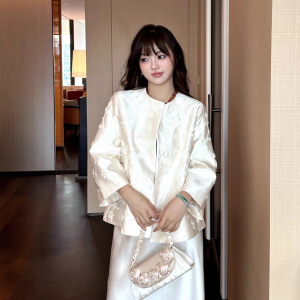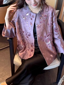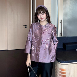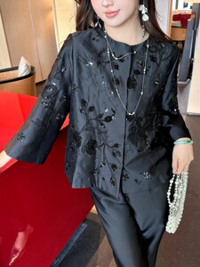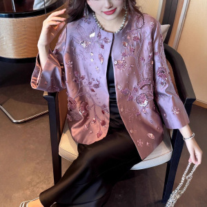 上新2025篙货新中式斜纹丝毛重工钉珠外套气质减龄开衫上衣不退换