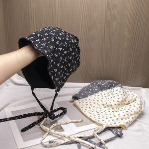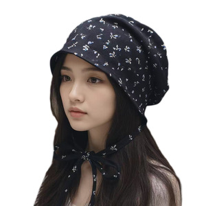 碎花绑带包头堆堆帽女ins百搭显脸小头巾复古冷帽大头围宽松帽子