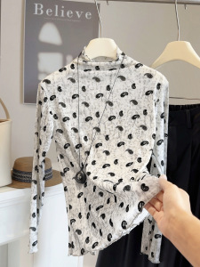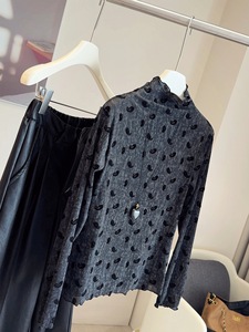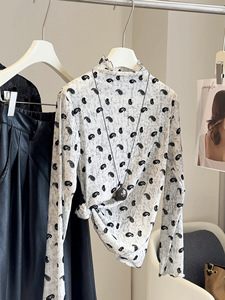 半高领弹力植绒网纱长袖打底衫女2025早秋季新款修身显瘦上衣小衫