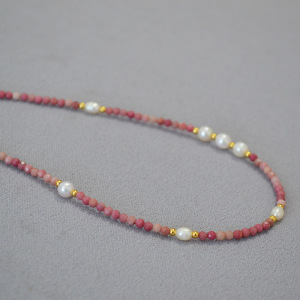 法式温柔甜美淡粉色蔷薇真石串珠淡水米粒珍珠气质叠带百搭细项链