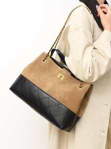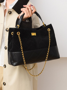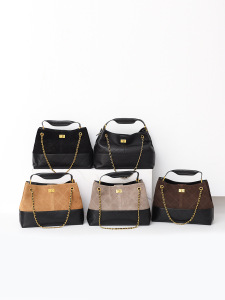手提包2025新款轻奢撞色设计感链条包复古时尚磨砂皮高级感单肩包